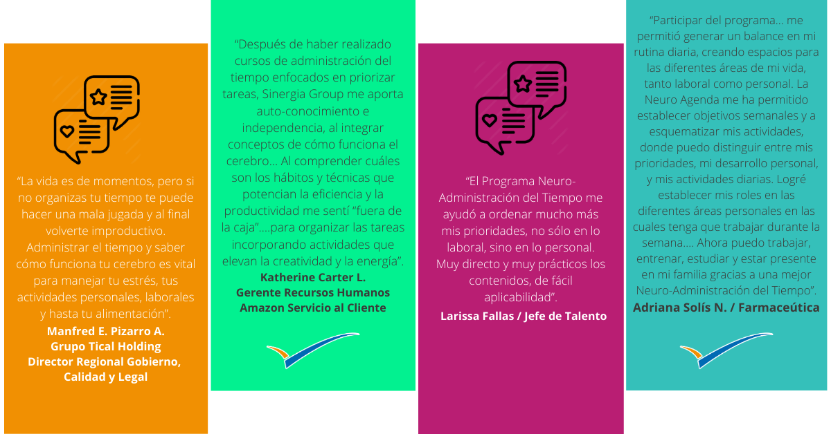 - Reconoces e integras todos tus roles en tu planificación y Administración del Tiempo? ¿Sabías que a través de la experiencia en cada uno de esos roles produces o gastas energía? Aprenderás a producir energía y mantener un estado óptimo físico y emocional para ser una persona más productiva y disfrutar de lo que haces.